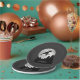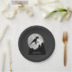A funny pop culture parody reminiscent of the 80's, this design is inspired by wonderful motion pictures of the past. It features a T-Rex flying on his bicycle, silhouetted against a bright full moon in the background. A group of fir trees below add a sense of wonder to the scene. Personalize the text template with your family name or other desired text. These paper plates make a wonderful choice for snacking in your den, rec room or home theatre room. They also make a perfect hostess gift to take to friends you are visiting who enjoy watching movies. Available in 2 sizes: shown here in 7-inch diameter size, they are also available in 9-inch diameter size.