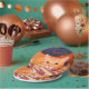 Cute, funny, bright orange tabby cat lover paper plates. Digitally painted photograph of adorable bright orange cat with orange, brown eyes. Mischievous looking cat laying down with copper, ginger colours. Image copyright Marg Seregelyi Photography.