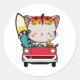 Funny Tabby cat is driving to the beach Classic Round Sticker