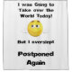 I was going to take over the world today - But I overslept - Postponed…Again!
