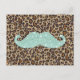 Funny Teal Green Bling Moustache And Animal Print Postcard