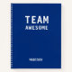 Funny Team Personalized Notes Office Meeting Notebook features the text "Team Awesome" with your personalized name below on a blue background. Personalize by editing the text in the text box provided. Designed for you by ©Evco Studio www.zazzle.com/store/evcostudio