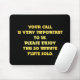 A humourous message is written in bold yellow text against a black background. It reads, "Your call is very important to us. Please enjoy this 20 minute flute solo."