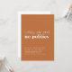 If you love neutrals, this simple style invitation is right for you. The invitation features an elegant design, with a soft, burnt orange background. In the centre, the party details are beautifully scripted in a white text exuding an air of sophistication. The funny text "turkey, pie and no politics" will give your guests a chuckle before they even show up. Welcome guests to your Thanksgiving dinner party in style. Background colour and text is editable.