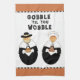 Cute Thanksgiving decor featuring the original "Gobble 'Til You Wobble" pilgrims holding pie.