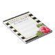 Make your mundane tasks a bit more fun with this funny notepad for women which says "Things to do, but first, wine." Use it for jotting down your epic idea's while planning your wedding or birthday, or use it to jot down the shopping items you forgot the first time, or use it as a to do list. The possibilities are endless. The design features a gold frame and a pink watercolor rose and leaves on a black and white striped background.