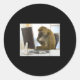 Funny Thinking Monkey Meme Office Curious Ape Brai Classic Round Sticker