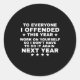 Funny To Everyone I Offended This Year Work On You Classic Round Sticker
