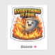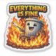 Embrace the chaos with this high-detail comic-style trash can sticker. Featuring a happy dumpster fire roasting a marshmallow, this "Everything Is Fine" decal is a relatable winner for office workers and students. A vibrant and funny addition to your laptop or water bottle.