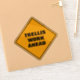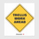 A classic yellow diamond caution road sign warns of trellis work ahead in a thick black sans serif font. A pun play on words of a classic sign, road work ahead, garden humour, fence architecture, for purgola or plants.