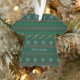 This funny trombone ugly Christmas sweater ornament is a cute trombonist holiday gift featuring a retro holiday pattern of snowflakes and trees around a row of band instruments. Great for a winter holiday party for a musician.