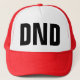 (DND, "Do Not Disturb", hat, "social media", chat, status, "messaging app", "text messaging", texting, LOL, funny, "trucker hat")