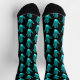 Show your unique fashion side wearing these Funny Turquoise Hand Pattern Socks. Each sock is designed with a black background. You can customize and change to any colour. The hand print is neon like turquoise patterned on the socks