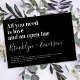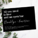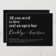 Invite friends and family to join you for your wedding celebrations with this funny wedding invitation. The text reads "all you need is love and an open bar"