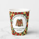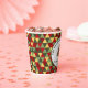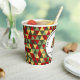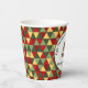 Paper cups with a triangle red, green, and gold ugly Christmas sweater design to coordinate with the party invites for an ugly sweater themed holiday party. This has a funny message and an editable name and date that you can personalize.