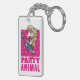 A funny unicorn 80s rocker on an acrylic keychain. Use "Personalize this template" to tweak the default "PARTY ANIMAL" text and create a unique, customized gift; text changes are reflected on both sides. Featuring a glam rock unicorn, accessorised to the max with sparkling blue star guitar, zebra print leggings and big jewellery. If unicorns formed bands, it would have to be glam rock.