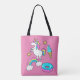 Funny unicorn pooping rainbow sprinkles on doughnu tote bag