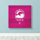 A canvas print with a humorous design. A sleeping uncorn with a fancy mane and tail. Deocrated with a trio of stars. A rainbow arched overhead. A circular wreath made up of clouds, hearts and flowers for additional girly flair. Typography says Magical AF. Humorous and cute. The background is a dark pink cerise color.