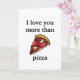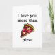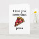 Envoyez un rire à votre bien-aimé avec cette carte de voeux de la Saint Valentin pliée "Je vous aime plus que la pizza". Personnalisez l'intérieur avec le nom du destinataire. Le message dit : "Chère pizza, je veux dire, NOM, Heureuse Sainte-Valentin".