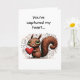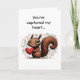 Cute cartoon squirrel holding a red heart. Outside text: “You’ve captured my heart…” Inside text: “And my nuts, too!” Great Valentine’s Day card for her. Male to female.