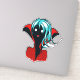 Vampire girl sticker with a digital illustration of a funny dark skinned undead character with glowing eyes, blue hair, fans and vibrant red cape.
