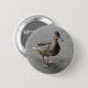 This button features a photograph of a funny duck waddling across a concrete path. This cheeky bird had come out of a pond and was on the hunt for some bread in a quiet park.