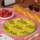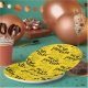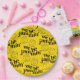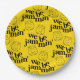 Make culinary magic at the party with this paper plate, which features a repeating pattern of the pun "we be jammin'" bracketed by cute smiling miniature canning jars merrily dancing away on a bright yellow background.