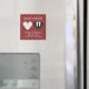 Announce your wedding in an original and informal way with this funny Save the Date announcement keepsake magnet featuring heart shaped bride and groom, wedding couple illustration on red.