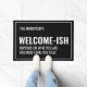 Add some tongue-in-cheek humour to your entry with this fun doormat. Words read "Welcome-ish" and "Depends on who you are and how long you stay." Personalize it with your own family name or if you don't wish to have your name, simple delete that text. Customize the colour of the background to match your own aesthetic by selecting your own background colour from within the design tool!