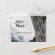 Change of address postcard shows a house perched on the side of a large, high, mountain cliff. The front text reads "We've Moved" and "We look forward to your visit" over a cloudy background. The back text includes the new address and contact information, which can be customized and personalized.