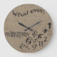 Funny Whatever I'm Late Burlap Clock, Burlap look background with numbers all mixed up on the bottom- silly funny clock for those who are always late anyways. Great gag gift for boss.