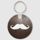 Funny White Moustache on oak wood background Keychain