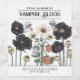 Funny black and white "Vampire Blood" wine bottle labels for Halloween baby shower favours or party treats. The cottagecore design features moody fall floral illustrations of vampire strawberries and black poppies. Cute mushroom ghosts fly around the flowers. The text can be easily customized with the details of your baby shower.