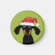 Cute black and tan cartoon Dachshund wearing a Santa hat. A fun holiday fridge magnet for Wiener Dog lovers. This cute Christmas dog is available on Xmas cards and more products that make great gifts.