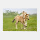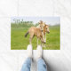 Two cute dun coloured Konik foals playing, legs hang around the neck, they are part of a free-range herd of the Polish primitive horse breed live in nature reserve De Rug, Meuse, Roosteren, Netherlands. Photo taken by Katho Menden. This doormat welcome is a gift idea for horse lovers.
