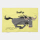 Funny wildebeest running cartoon illustration kitchen towel