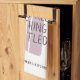 Funny wine lover kitchen towel with stylish rosé bottle illustration reading "It's not good to keep things bottled up" with your custom name or text below in a modern, trendy typography design.