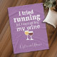 A little drinking humour that you can pass on to your wine loving girlfriends. Make them laugh with this humourous gag gift or white elephant. I tried running, but I kept spilling my wine.