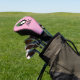 Funny winter penguin cartoon custom golf driver head cover. Initialled sleeve with cute design. Custom monogram gift for golf players. Monogrammed template with trendy design. Personalized sports accessory for him or her. Customizable template with custom name or monogrammed initial letters.