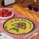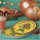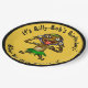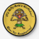Unique, funny and totally cool paper plates adorned w/a quirky, original design by digital artist, Leslie Sigal Javorek features a comical Pacific Island Native Witch Doctor in a grass skirt, wiggling his ears while sticking out his tongue along on a bright yellow background rimmed in Black. 2 custom text fields for you to personalize, default to: "It’s Billy-Bob’s Birthday!" & "Blow Yer Raspberries!"