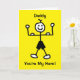Funny cartoon of a stick man strong man father flexing his muscles. Message reads 'Daddy You're My Hero!' and inside says 'Happy Father's Day'. Card has a yellow background but it's easy to edit this to a different colour. Easily personalise this card by editing the template text on the front and inside. Thanks for viewing my designs!