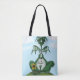 This whimsical tote bag features a funny yogi dragon practicing yoga. Personalize it by adding your text, or delete it to leave it blank. It's the perfect gift for the yogi in your life. It is based on an original art piece by © One Artsy Momma.
