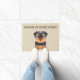 Funny front door welcome mats with image of a cute Yorkie dog and the funny words beware of killer Yorkie. Designed as a humourous front house door mat to greet your guests and visitors with a smile.