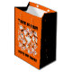 Whoa! That's going to be a whole lotta candy! If you find Hallowe'en to be one of the most fun-filled days of the year, then this whimsical gift bag, which features the punny observation "You've Been Ghosted!" styled in a creepy font in white with cute AI-generated crowd of ghosts celebrating their big night on a pumpkin orange background--is a great way to say trick or treat at the door on the spookiest time of the year (and use a real groaner)!