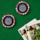 This poker chip features all twelve zodiac signs arranged in a circular design. The phrase "Zodiac Roulette - Spin the Stars and See Who I am Today" is boldly displayed, adding a whimsical and cosmic touch. Perfect for astrology enthusiasts or anyone who loves a bit of mystery and fun, this unique poker chip brings a playful astrological twist to any game or collection.