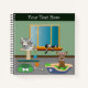 If you're a true animal lover, this notebook is tailor-made for you! Featuring a delightful cartoon illustration of a room filled with furry friends, including a contented cat on his scratch post, a charming chihuahua with its little pink hair bow in her doggie bed, and a relaxed cat basking in the window, it's a heartwarming sight. You can add a personal touch by customizing it with your name or any text you desire. Moreover, you have the option to choose the font size, style, and colour that suits your preferences.