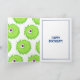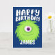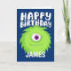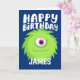 A cheerful furry bright lime green monster on a blue background for your little monster's birthday.