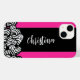 Fuschia pink black white zebra pattern heart name Case-Mate iPhone case