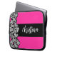 Fuschia pink black white zebra pattern heart name laptop sleeve