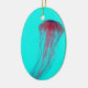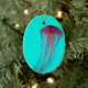 Fuschia Pink Jellyfish on Aqua Blue Green Ceramic Ornament